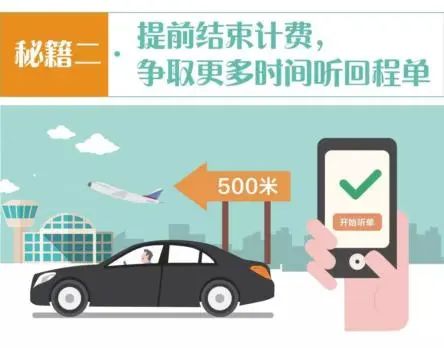 司机送达乘客到候机楼、结束了优质的服务后,不要马上就上车离开,而要放慢节奏,尽可能在此停留3~5分钟,因为此时系统派单更倾向于派给距离较近的司机!
