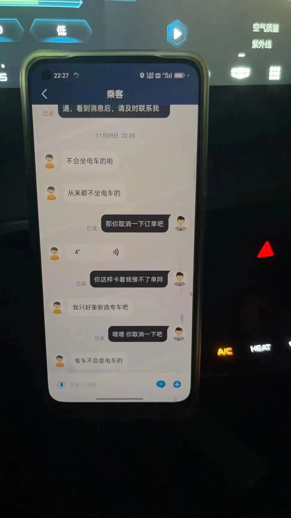 请看最近一名网约车司机与乘客的对话: