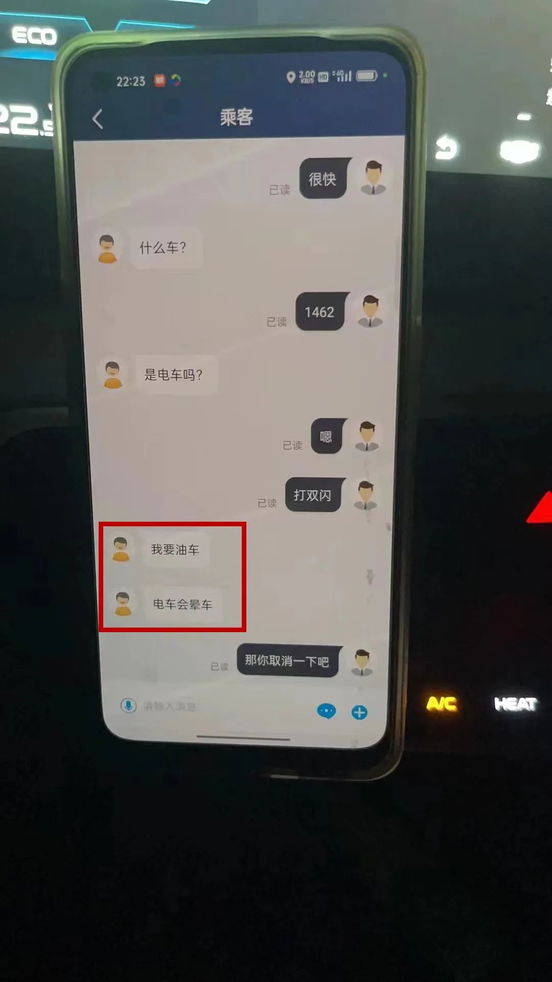 女乘客:是电车吗?我要油车,电车会晕车!网约车司机:我TM……