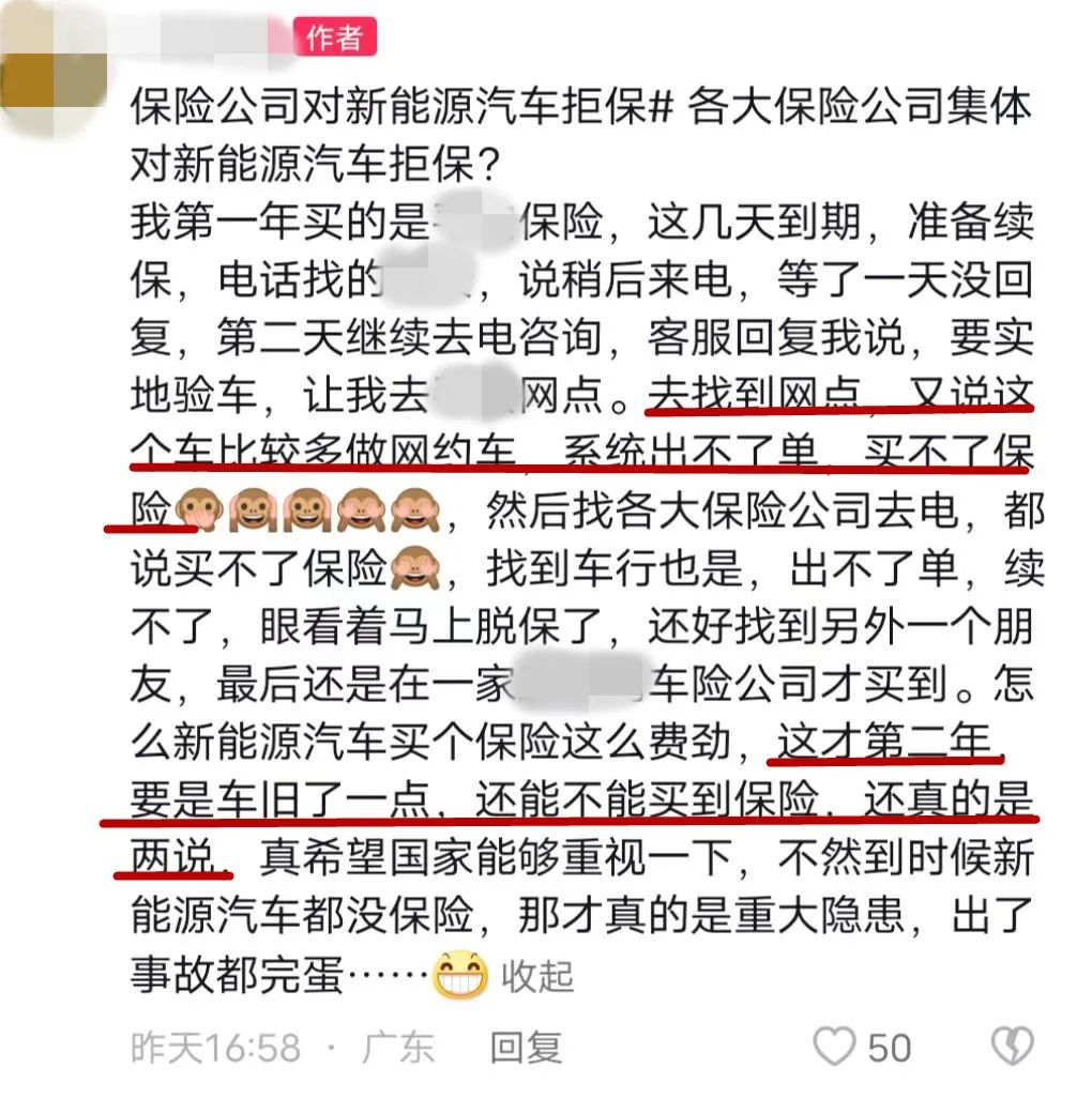 近日,一名新能源车主在V博上吐槽自己购买车险所遇到的糟心事!