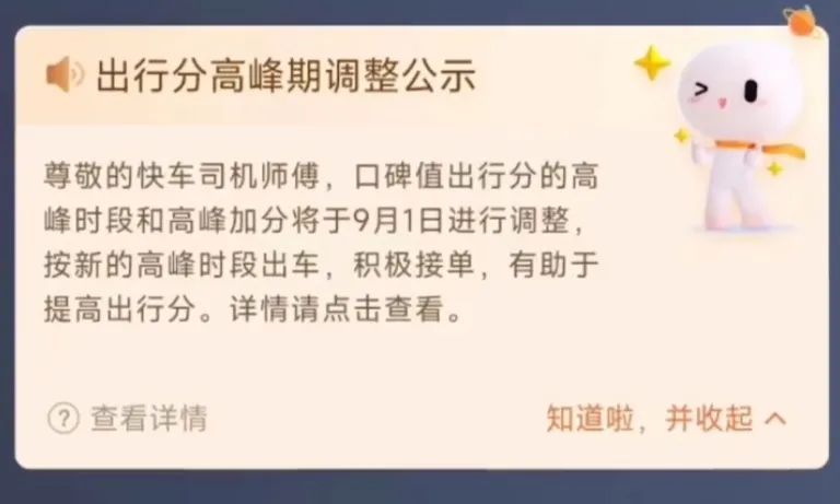对于平台的这一次调整,不少人都表示,调整只有会更加有利于司机跑出行分,因为时段相对更集中,加分系数也有增加,调整后跑分可能会更容易点。