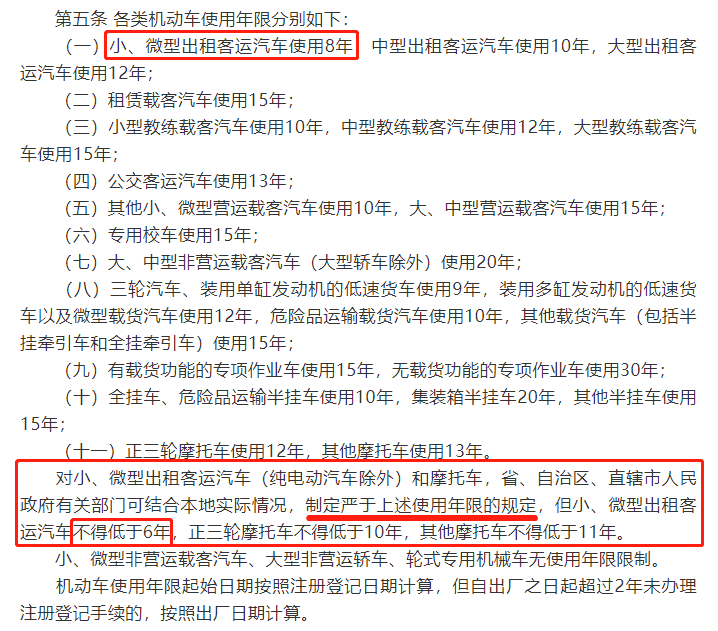小、微型出租客运汽车使用年限为8年